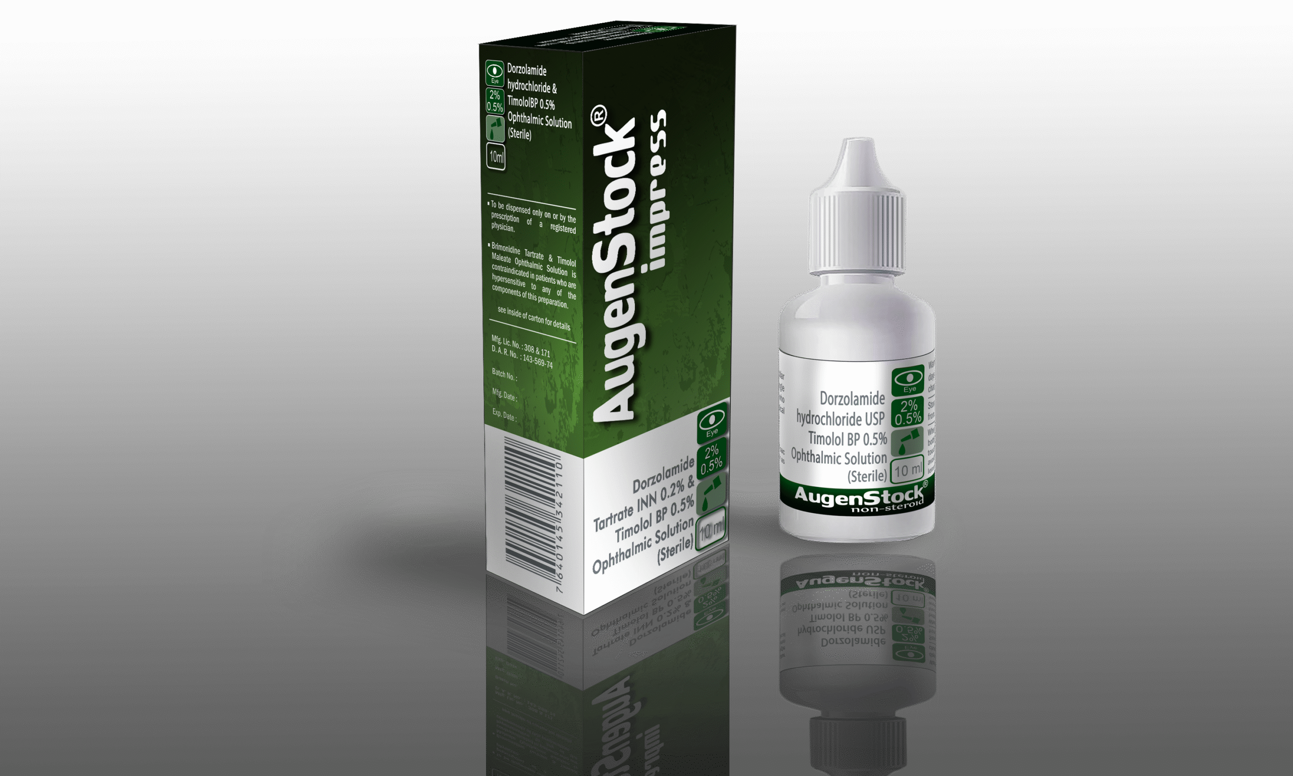 AugenStock Impress Sterile Eye Drops: Each ml contains Dorzolamide Hydrochloride USP equivalent to Dorzolamide 20 mg and Timolol Maleate BP equivalent to Timolol 5 mg.
